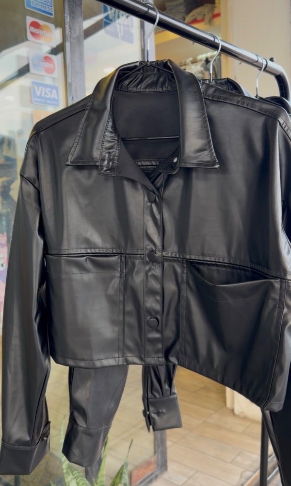 Campera engomada con bolsillos